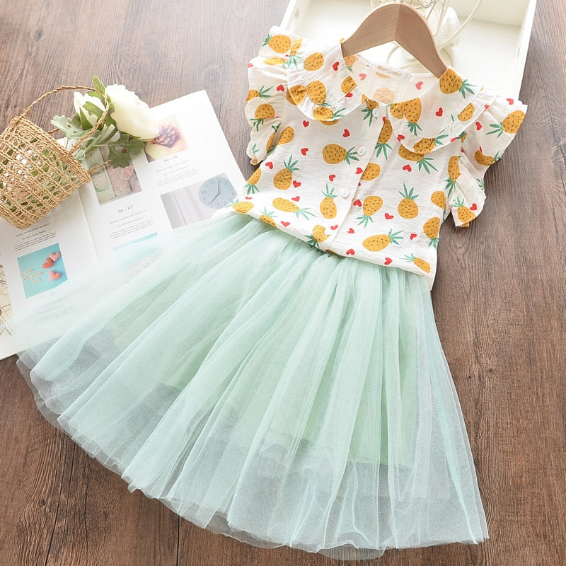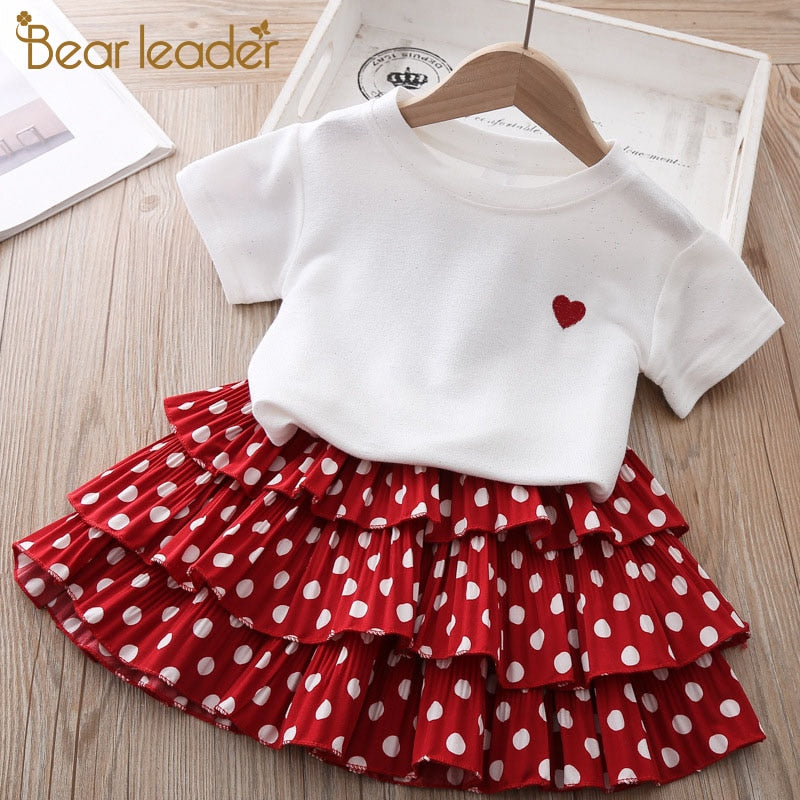 Bear Leader Toddler Kids Baby Girl Print White Blouse Polka Dot Skirts Summer Short Sleeve 2PCS Infant Girl Clothes 3-7 Years