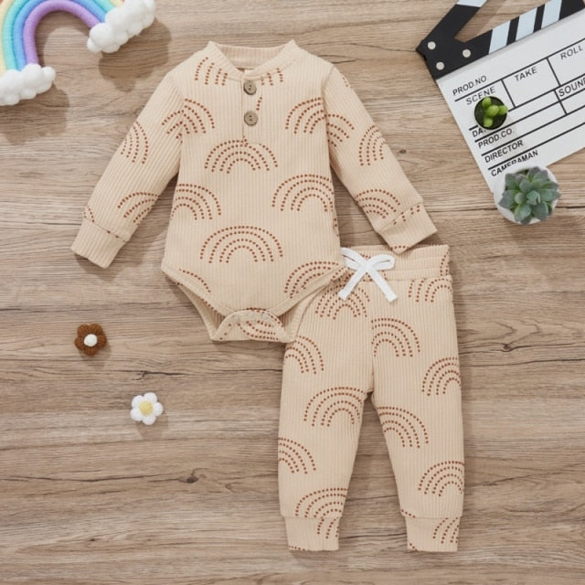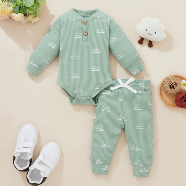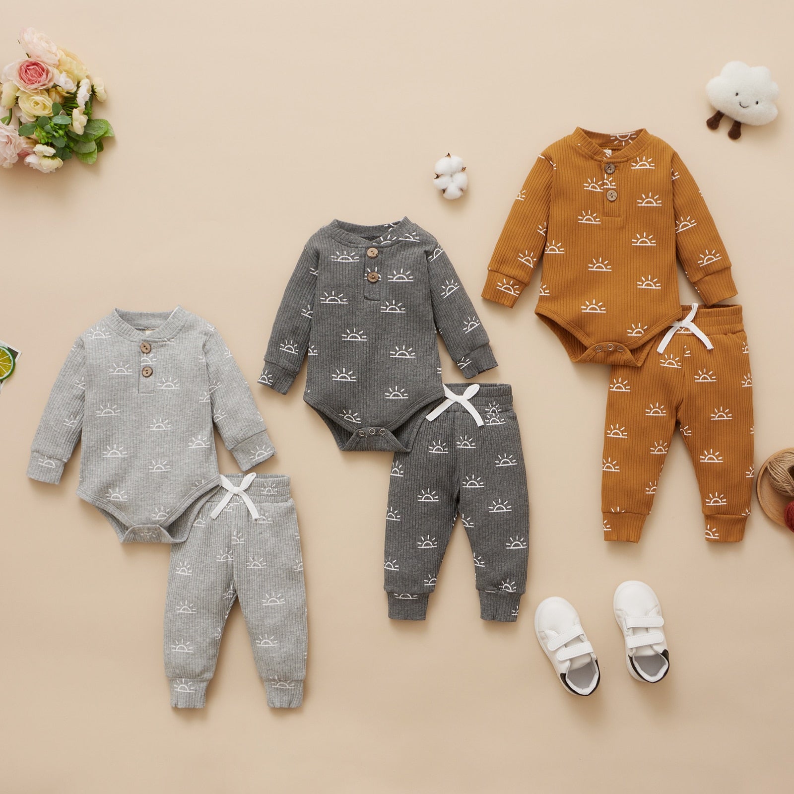 Introducing our newborn baby bodysuits + elastic pants! Made from soft and comfortable cotton material, this set is perfect for your little one. The bodysuits come in a variety of sizes to fit 0-6 months, 7-12 months, and 13-24 months. They also feature a cute O-neck collar and printed patterns that are sure to be a hit with your little one. The pants have an elastic waistband for a snug and comfortable fit. This set is essential for any new parent!